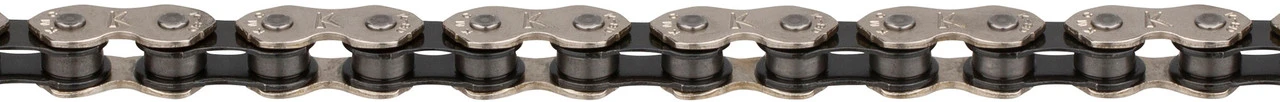 Die KMC K1 Wide 1-fach Kette aus der Reihe Kool Chain eignet sich bestens für Räder mit Nabenschaltung, BMX Bikes, Fixies und andere Singlespeed-Anwendungen. Ein nicht wiederverwendbares Kettenschloss wird mitgeliefert.
